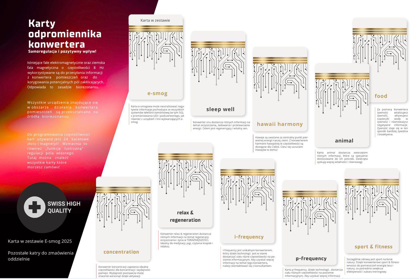 Tworzy pole ochronne, które harmonizuje wpływ nienaturalnych częstotliwości na organizm, redukując biologiczny stres wywołany ekspozycją na elektrosmog.