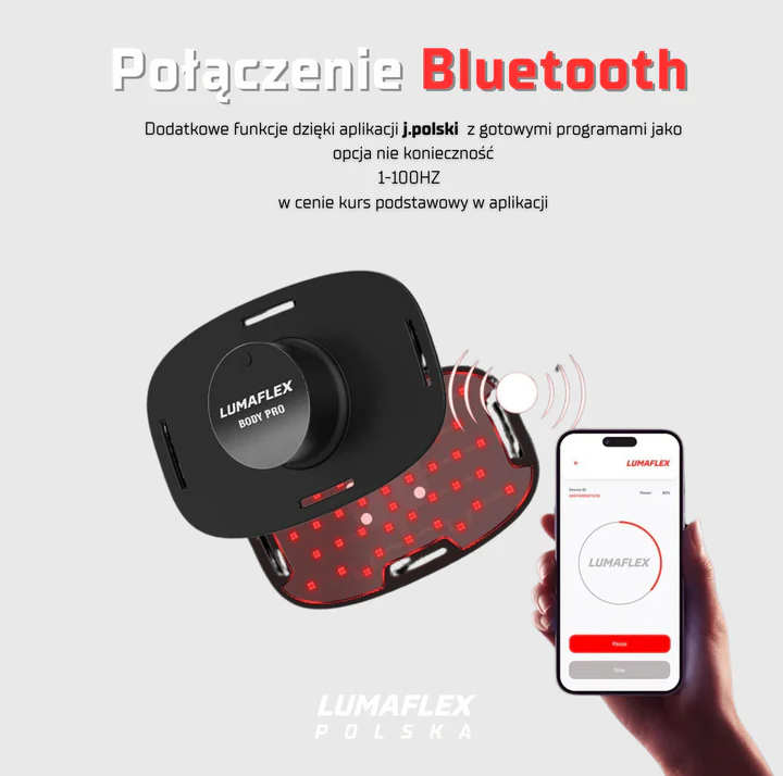 Przedstawiamy zestaw Lumaflex Body Pro Plus z aplikacją w j.polskim Elastyczny Mobilny Panel terapii światłem czerwonym i podczerwienią z własnym zasilaniem (bezprzewodowy).