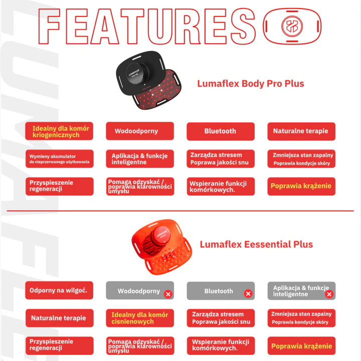 Lumaflex Essential Plus to nie tylko urządzenie – to katalizator transformacji, który pozwala Ci żyć pełnią życia. Niezależnie od tego, czy szukasz ulgi w bólu, chcesz poprawić swoje wyniki, czy po prostu dążysz do większej witalności i dobrego samopoczucia, Lumaflex Essential + jest Twoim niezastąpionym partnerem w drodze do optymalnego zdrowia. Skieruj się w stronę bólu i podnieś swoje życie na wyższy poziom, popraw krążenie czy przyspiesz regeneracje – dzięki